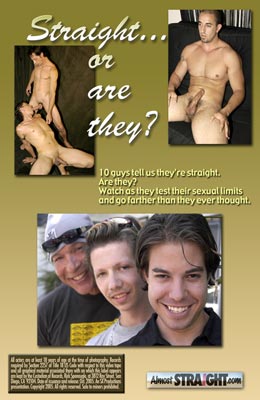 Straight... Or Are They? That's the title of the latest movie to cum rolling out of the Almost Straight studio. I've gathered together yet another batch of confused (and some not so confused) guys to do their thing for the camera. For instance there's Stacy a big masculine jock with a name Johnny Cash would've loved. He gets so wrapped up in his porn he seems to forget we're even there! Even better are Zae and Eric, two chill San Diego dudes who surprised my whole crew by fucking like a couple of pros for the cameras. And you can't miss Xander whose sordid love life includes a quickie in a porta potie with his girlfriend. At Almost Straight we never leave a sexual stone unturned! Straight... Or Are They? You decide.